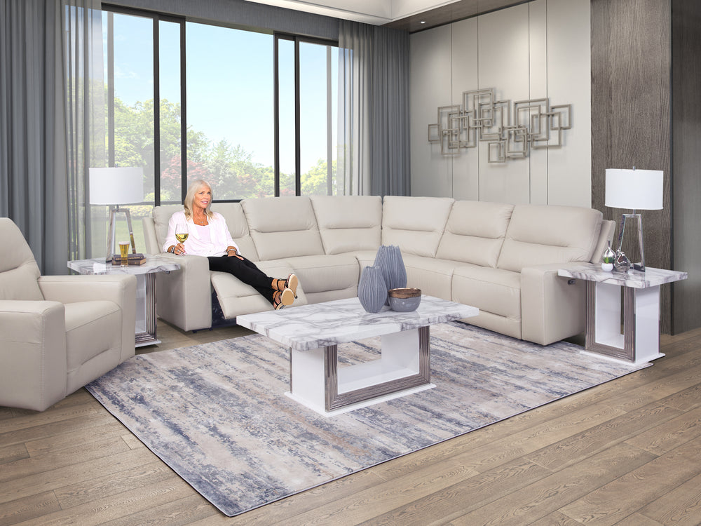 Stratos Stone 6 Piece Leather Zero Gravity Dual Power Sectional