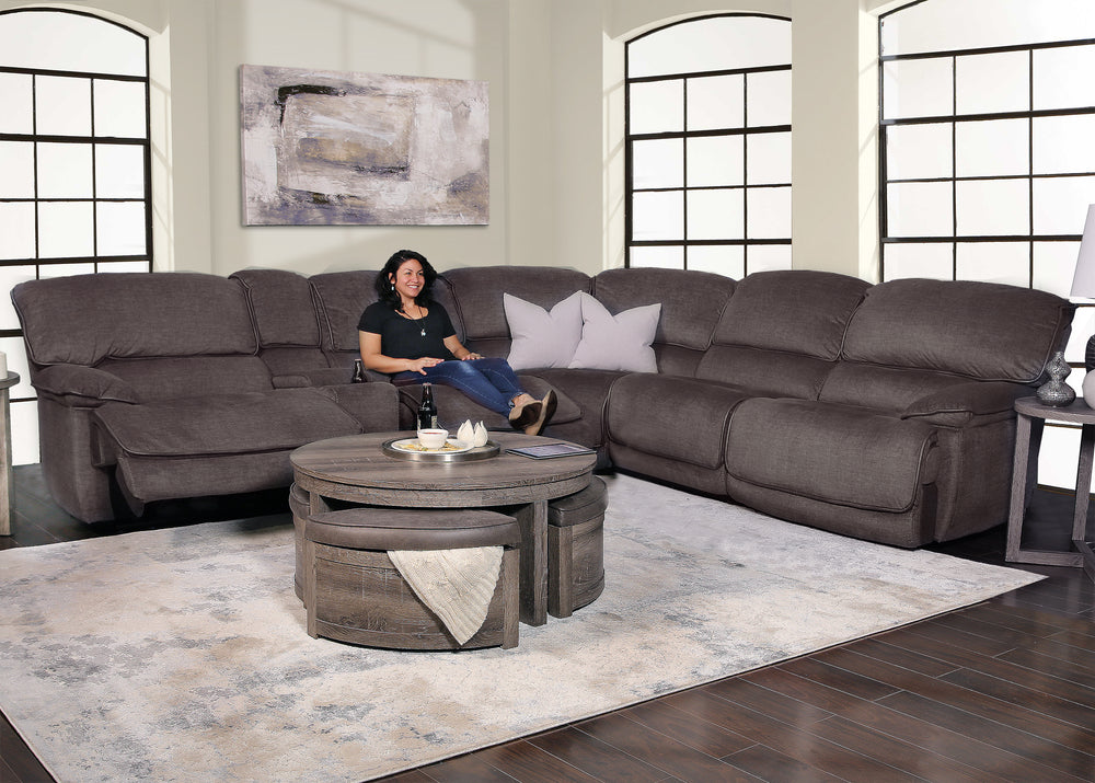 Brentwood Smoke 6 Piece Leather Triple Power Reclining Sectional