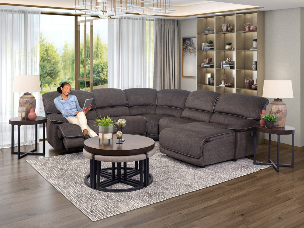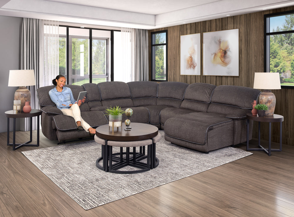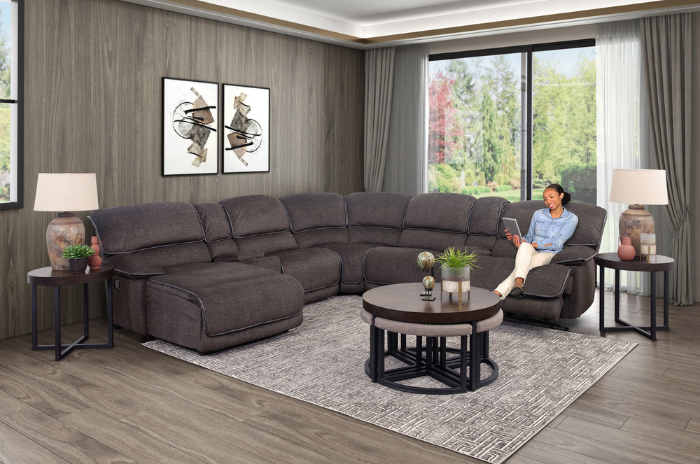 Avenger Dark Grey II 6 Piece Leather Triple Power Sectional