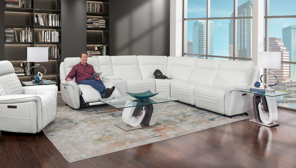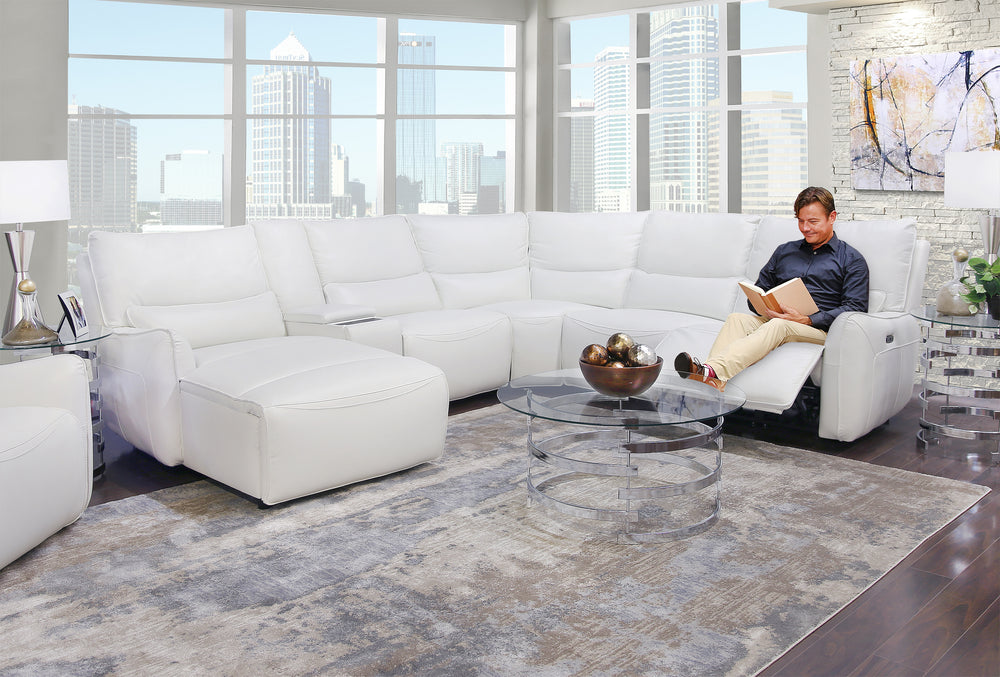 Senna White 6 Piece Leather Zero Gravity Dual Power Reclining Sectional Sofa