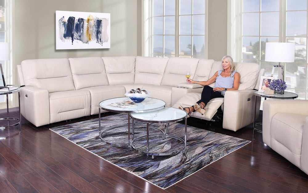 Dallas Ivory 6 Piece Leather Reclining Sectional