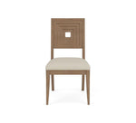 Silla lateral con asiento tapizado elaborada con maderas macizas y chapas de cerezo en un acabado marrón visón.