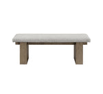 Banco tapizado en tela Bouclé. Fabricado con madera maciza y MDF con chapa de roble. Peso máximo 113 kg | 100 % poliéster | cc: WS