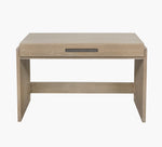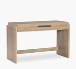 Escritorio contemporáneo elaborado con maderas nobles selectas y chapas de roble blanco. Acabado en roble desgastado con herrajes rústicos de peltre, con un solo cajón para almacenamiento. 122 cm de ancho x 50 cm de profundidad x 76 cm de alto.