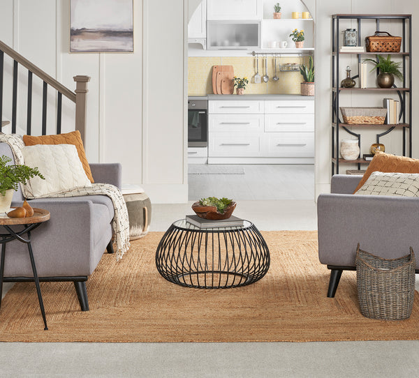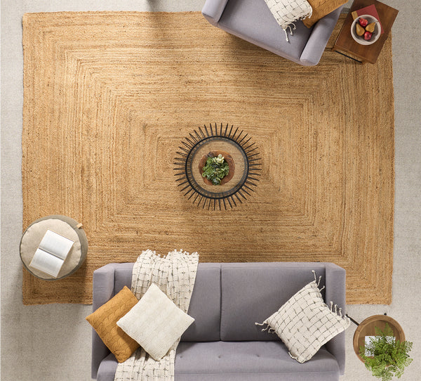 El clásico diseño de yute trenzado agrega un elemento orgánico que es ideal como base independiente para su decoración.