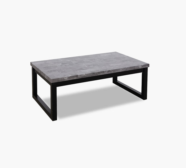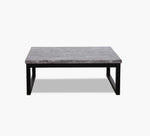 Contemporánea y elegante, esta mesa de cóctel está construida con una tapa de mármol sintético gris con una base de madera maciza acabada en negro. ***Mesa de comedor a juego también disponible.*** 48x28x18