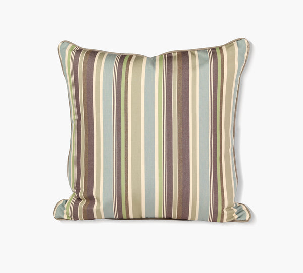 Cojín decorativo resistente a la intemperie de 50,8 x 50,8 cm con diseño reversible por delante y por detrás, tapizado 100 % acrílico teñido en solución, resistente a la decoloración. Parte delantera: Brannon Whisper/Parte trasera: Sparkle Birch. Incluye ribete en contraste en Canvas Taupe y cremallera para mayor comodidad. Hecho a mano en EE. UU.