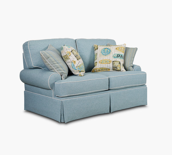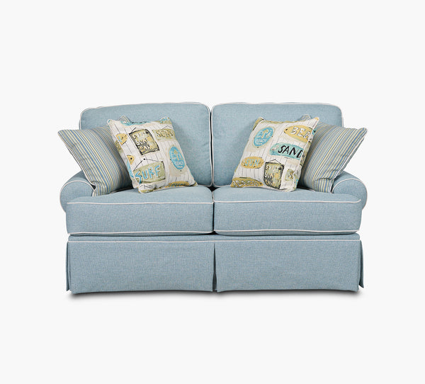 Dale a tu sala un estilo costero bicolor con un toque marinero. El Sandbridge presenta colores de inspiración costera que se combinan con un estilo transicional de brazos enrollados, ribetes contrastantes a medida y una falda con pliegues. Este loveseat incluye dos cojines decorativos a rayas y dos cojines decorativos en una novedosa tela playera. ¡Cojines de asiento y respaldo reversibles para satisfacer tus deseos de estilo!