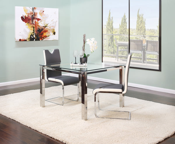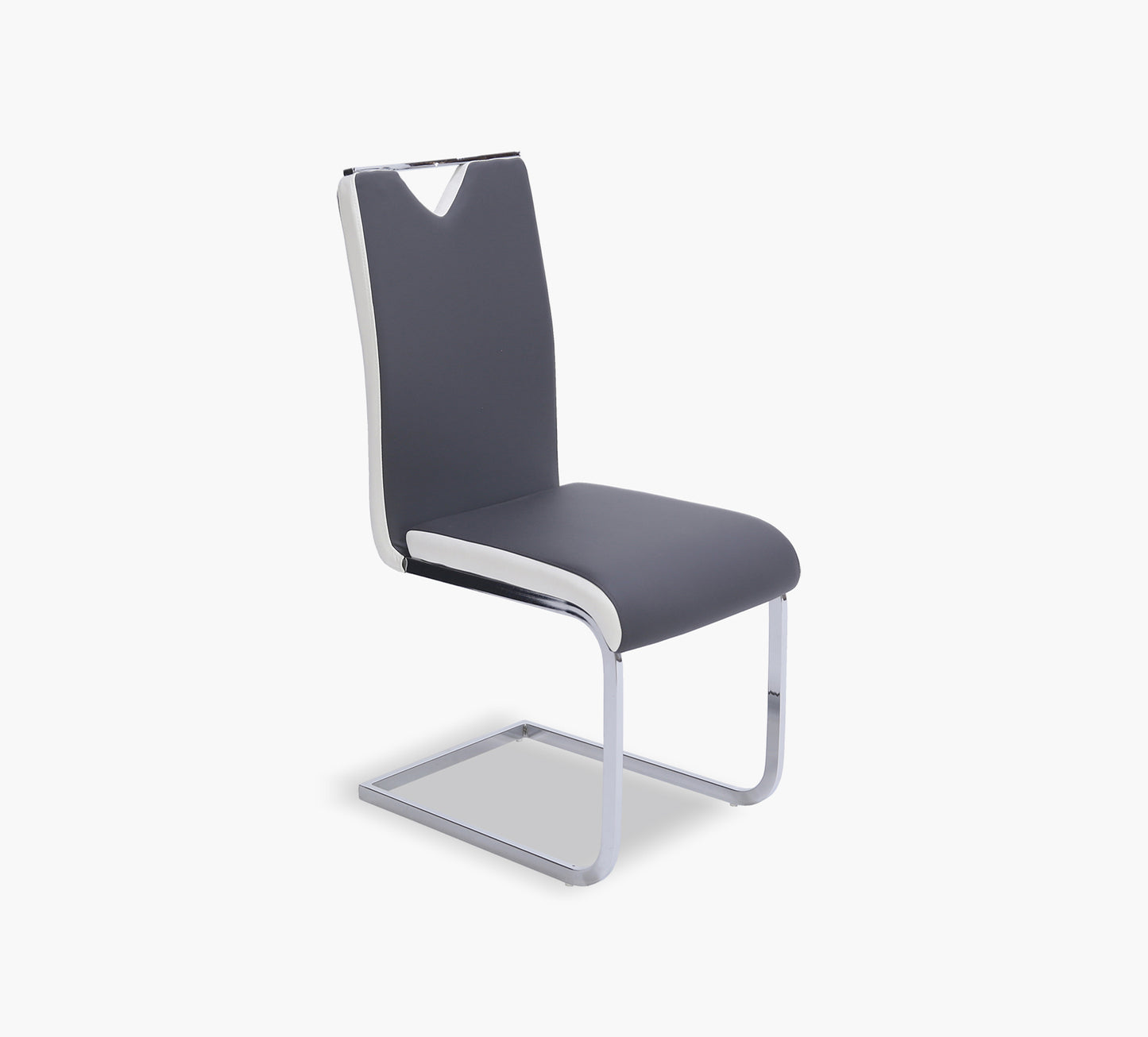 Silla auxiliar gris con ribete blanco, tapizada en poliuretano de fácil cuidado y con estructura de acero tubular con acabado cromado. Código de limpieza W.