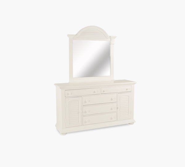 La cómoda Summer House ilumina una habitación con su estilo tropical. La cómoda de cinco cajones y dos puertas tiene un estante ajustable detrás de cada puerta con rejilla para satisfacer sus diversas necesidades de almacenamiento. Todos los tiradores de las puertas y los cajones están hechos de madera, las guías laterales de metal para los cajones se extienden por completo, los cajones interiores están completamente teñidos y las carpinterías francesas e inglesas de cola de milano están incluidas para una experiencia de calidad. Fabricada con madera maciza de álamo y pino. Espejo no incluido.