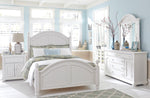 ¡Duérmete con la brisa tropical de la Casa de Verano! Hecha con madera maciza de álamo y pino con acabado en blanco ostra, esta luminosa adición a tu hogar. Cuenta con tiradores de madera para puertas y cajones, guías laterales metálicas de extensión completa para cajones y carpintería francesa e inglesa con cola de milano en los cajones interiores completamente teñidos. Los cajones y las puertas están enmarcados con molduras de cuentas y patas de madera. También disponible en tamaño queen. Este juego de 5 piezas incluye cama (cabecera, pie de cama, barandillas), cómoda y espejo. Cama king completa: 190 cm de ancho x 228 cm de profundidad x 162 cm de alto.