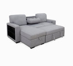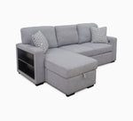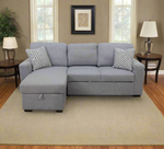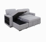 El seccional contemporáneo de 2 piezas cuenta con un sofá cama plegable y espacio de almacenamiento oculto. Tapizado en tela gris con dos cojines a juego, el seccional incluye puertos de carga USB y USB-C, estantes de almacenamiento en ambos brazos y una mesa abatible con portavasos. El chaise longue ofrece espacio de almacenamiento oculto bajo el cojín del asiento. La configuración de sofá cama y chaise longue con espacio de almacenamiento se puede invertir para adaptarse a su espacio. 100 % poliéster CC: W