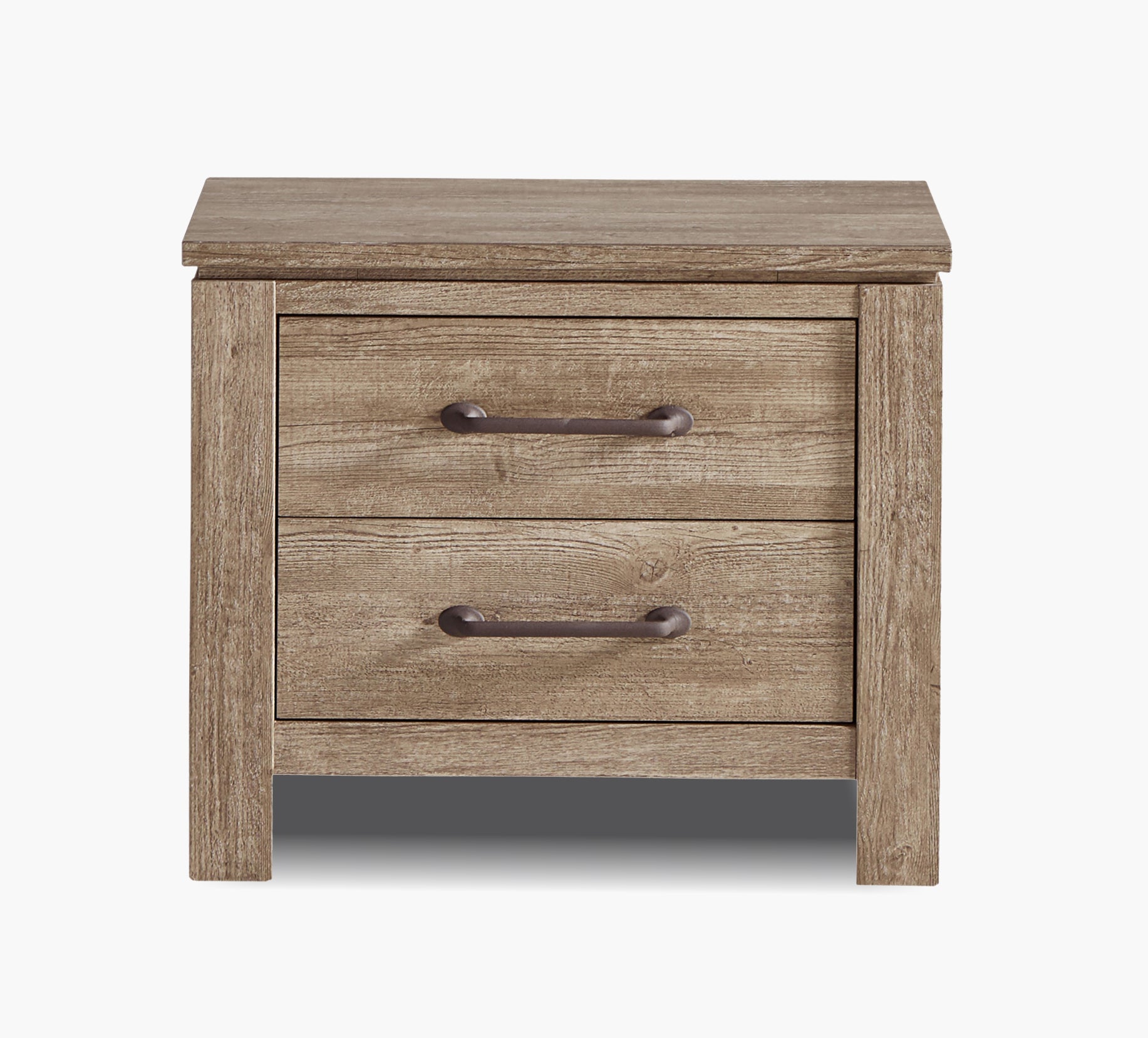 Simple, stylish, and built for everyday living. This 2-drawer nightstand features a warm pine finish that highlights the natural wood grain and texture, bringing a relaxed, organic feel to your bedroom. Full-extension drawers with smooth metal guides offer easy access to bedside essentials, combining rustic charm with modern functionality.