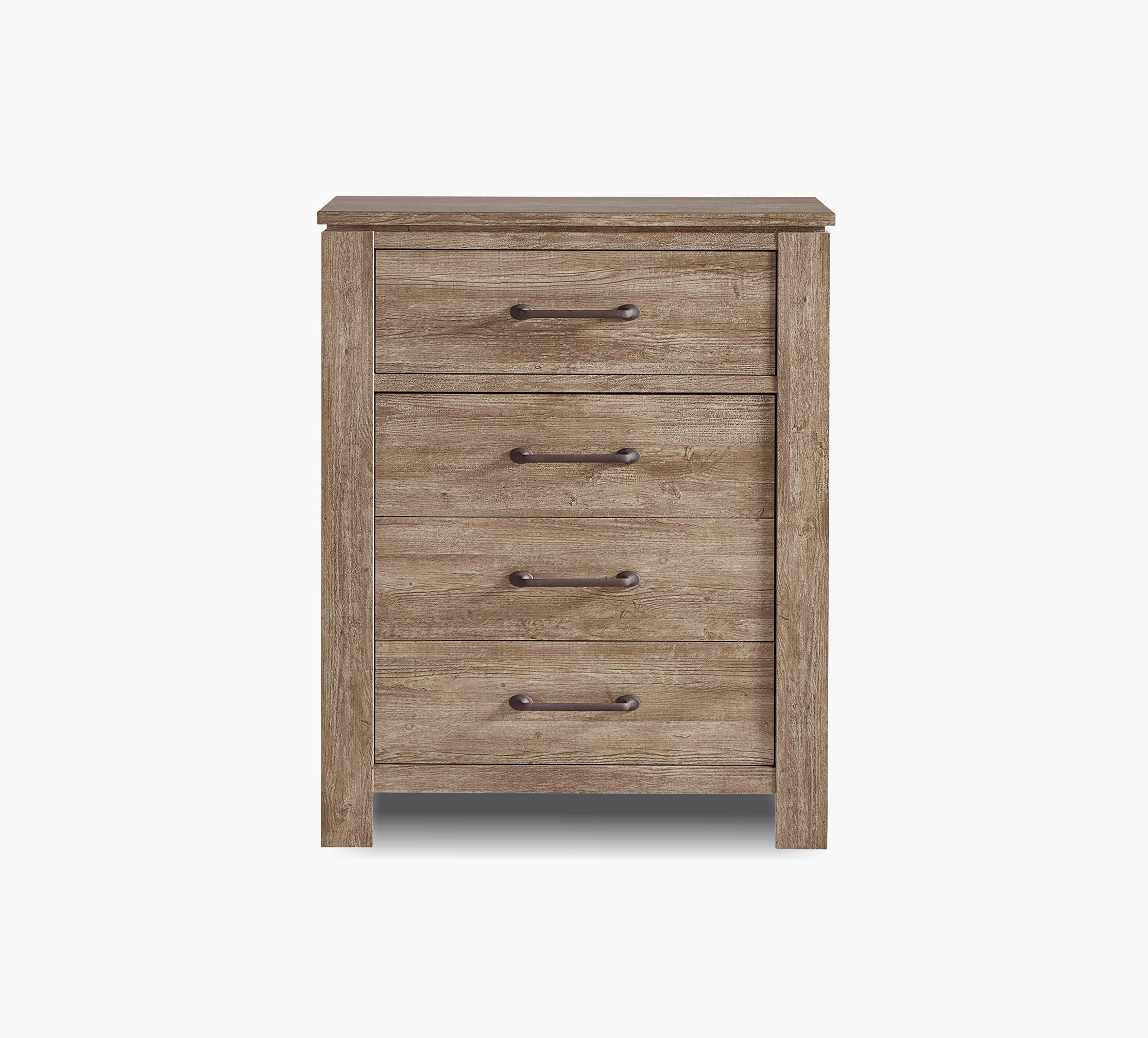 Natural charm meets everyday function in this pine-finished chest. The visible wood grain and textured surface bring a warm, organic feel to your space, while full-extension drawers glide smoothly on metal guides for easy access and reliable storage. A timeless piece that blends rustic style with modern convenience.