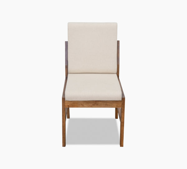 Add a touch of casual elegance to your dining space with this beautifully designed side chair. Upholstered in a neutral linen-like fabric, it offers a soft, versatile look that complements any decor. Crafted from solid mango wood for lasting strength, the chair features a stylish accent bar across the back for added character. With a weight capacity of 250 lbs and easy-care 100% polyester fabric (cleaning code X), this chair combines comfort, durability, and timeless appeal.