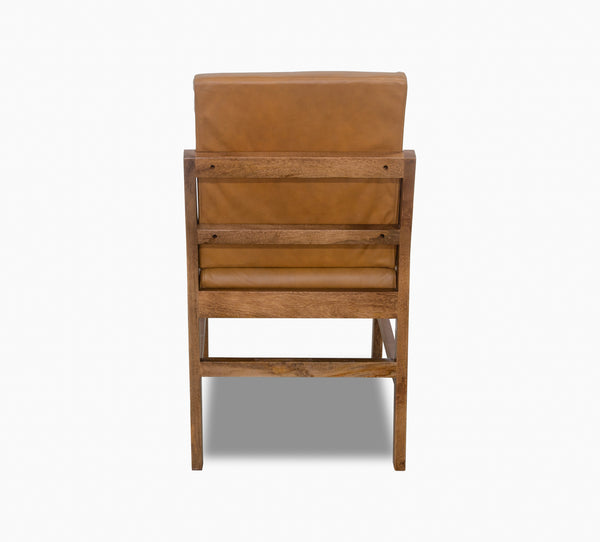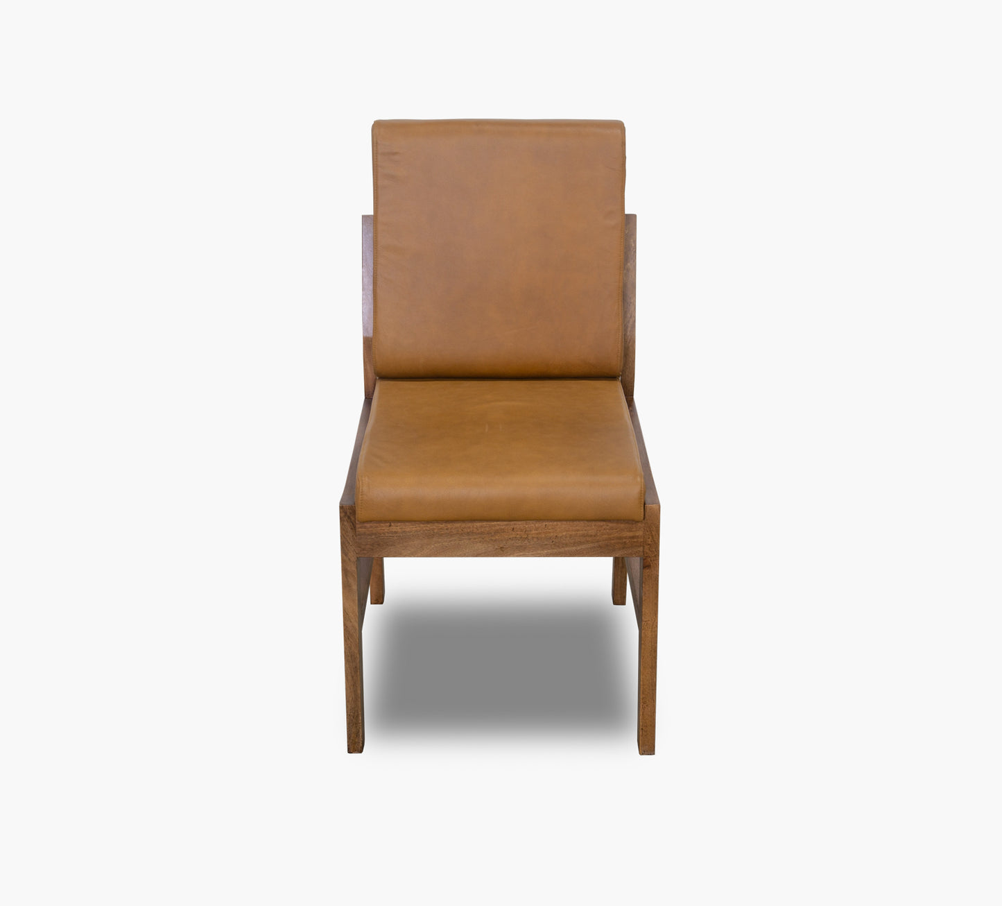 Bring rich character and timeless style to your dining space with this beautifully crafted side chair. Upholstered in genuine brown leather, it offers a luxurious look and feel that only improves with age. Built from solid mango wood for lasting strength, the design is accented by a sleek bar across the back for a touch of modern flair. With a weight capacity of 250 lbs and durable construction, this chair combines comfort, sophistication, and quality craftsmanship for years of enjoyment.