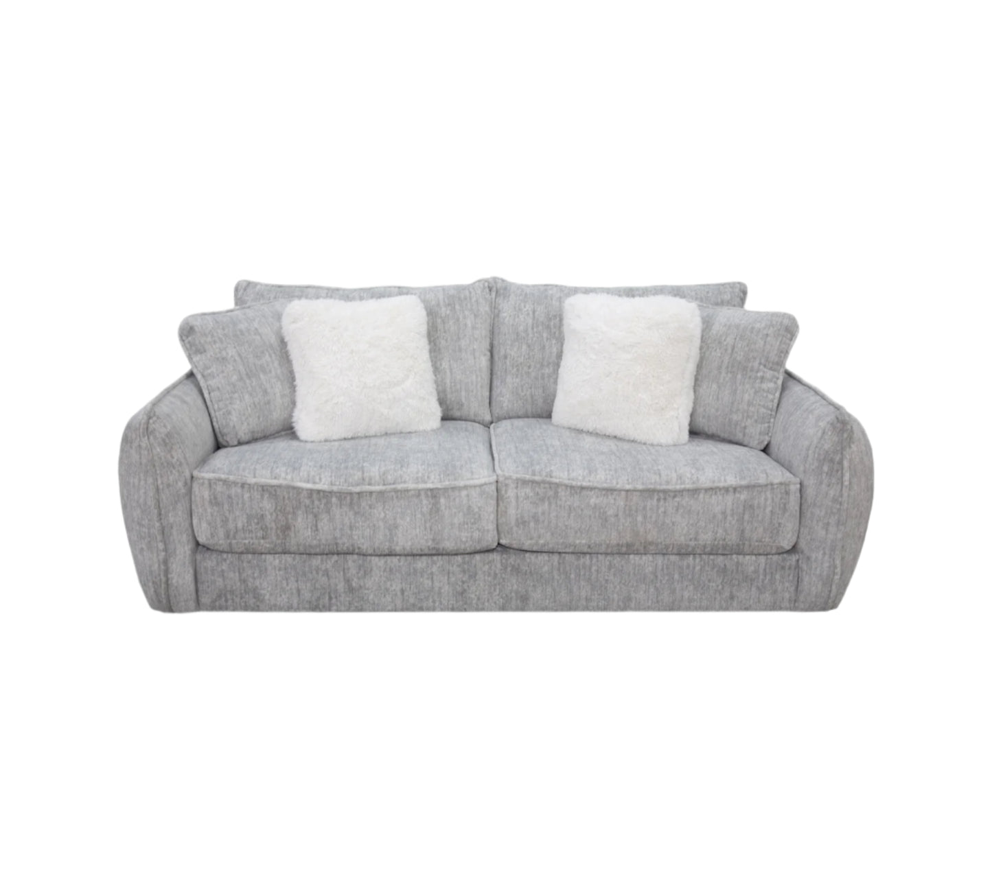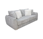 Contemporary two over two sofa upholstered in a soft, light grey printed fabric with a jumbo welt accent. Features a crescent arm with loose seat and back cushions for ultimate style and comfort. Includes two matching throw pillows and two correlate throw pillows 100% Polyester CC: W