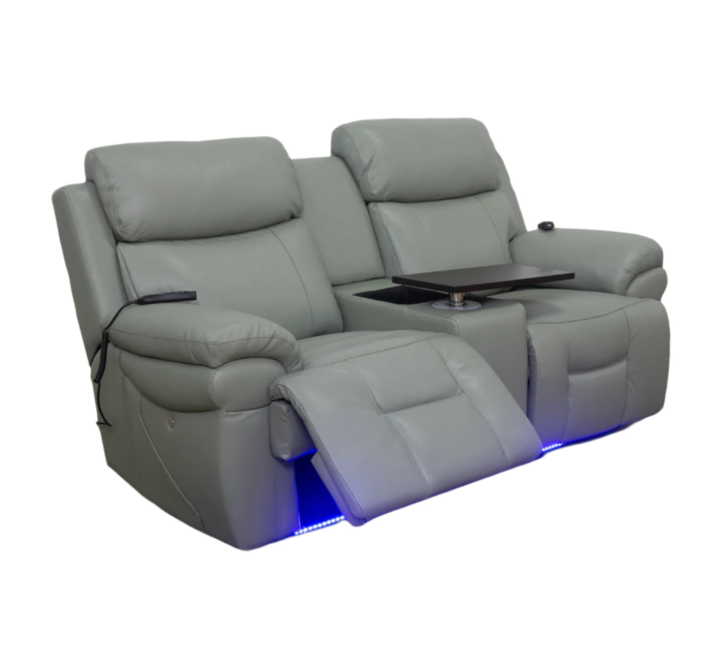 Bishop Jade Leather Zero Gravity Triple Power Reclining Console Loveseat