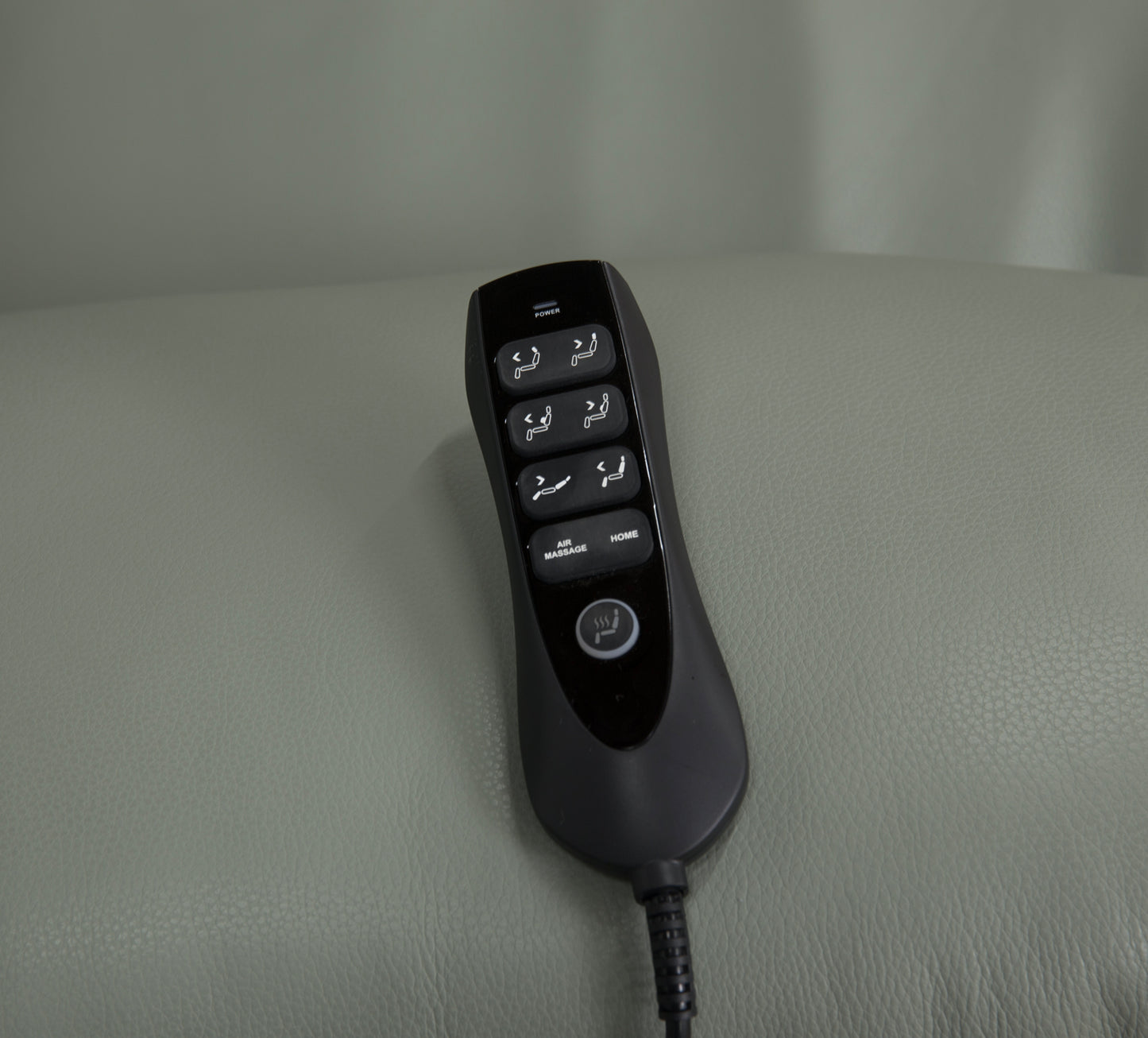 Top grain leather everywhere you sit matched with vinyl. Triple power motor offers power recline, power headrests, and power lumbar. Features a zero-gravity air massage system with heat. The control wands feature a home button, a multi-push button to control the massage intensity, and a USB port. The base rail lights are controlled by a button on the outside arm.