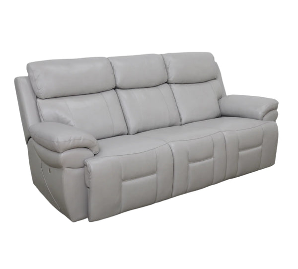 Bishop Silver Leather Zero Gravity Triple Power Reclining Sofa