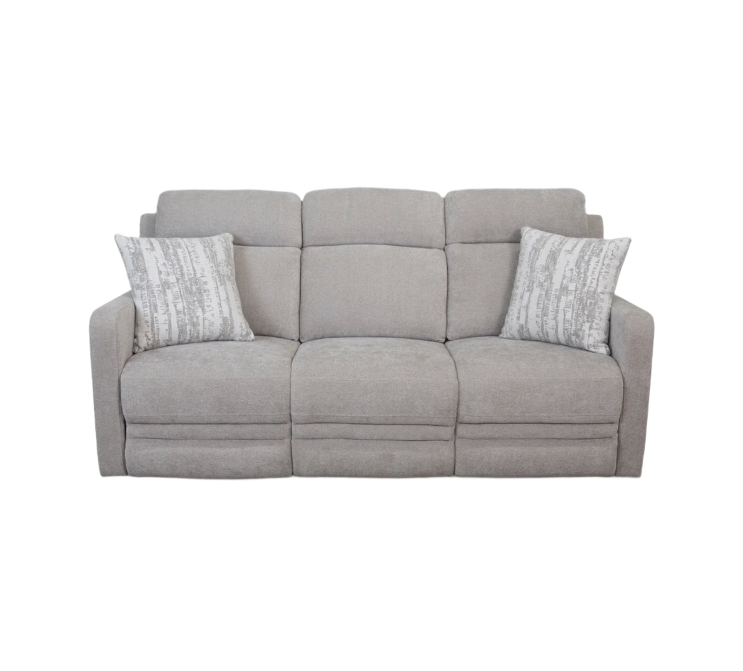 Contemporary three over three styling features thin track arms and padded chaise ottomans. Small scale but comfortable with supportive, 41"" tall tiered back. Available in manual recline, triple power recline, and triple power recliner with i/Table. Sofa includes 2 correlate throw pillows."