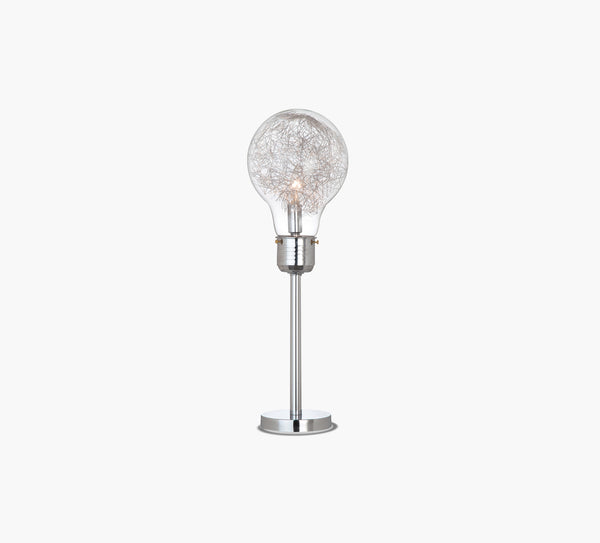 The sophisticated chrome one Bulb table lamp is sleek and modern, creating a striking mid-century inspired statement on your night stand, side table or desk. The exposed lamp better illuminates your room and adds a modern industrial flair to any room setting.
