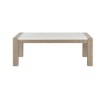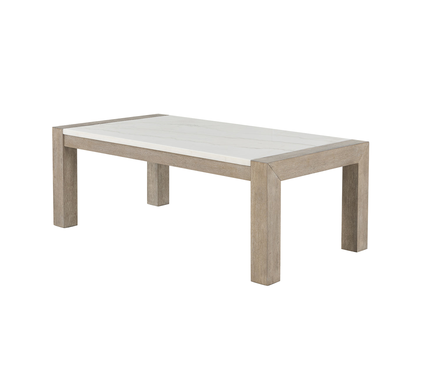 The Carrera Woods cocktail table seamlessly combines sleek design with modern functionality, making it the perfect addition to any living space. Crafted from durable hardwood solids and acacia veneers. The natural wood finish highlights the distinctive grain patterns, adding warmth and character. The white marble top features elegant veining that flows across the surface, creating a beautiful contrast against the smooth, light background. The natural patterns of the marble make each piece unique.