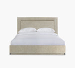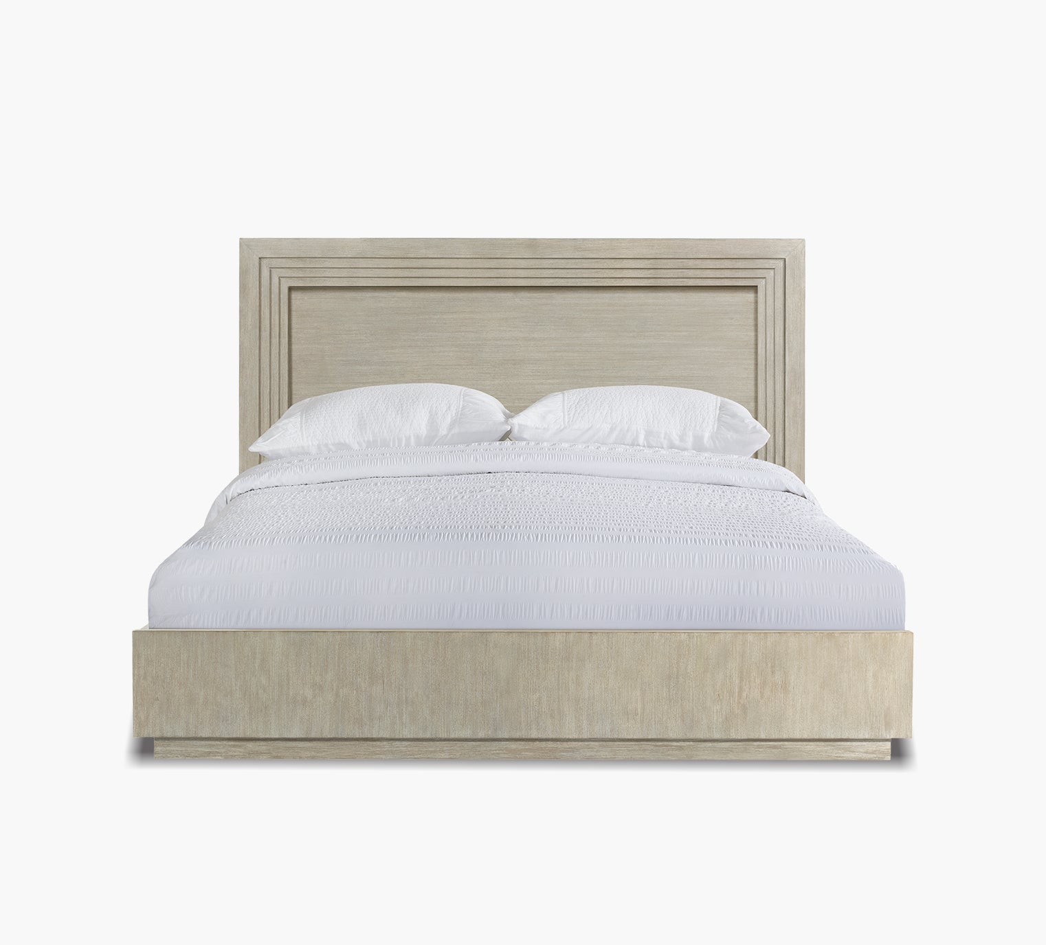 Modern coastal bed with a light and breezy style. Crafted of hardwood solids and quartered cherry veneers in a grey finish. Includes a light in the headboard. Weight Limit: 750 Lbs. | 100% Polyester | CC: W
