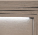 Modern coastal bed with a light and breezy style. Crafted of hardwood solids and quartered cherry veneers in a grey finish. Includes a light in the headboard. Weight Limit: 750 Lbs. | 100% Polyester | CC: W