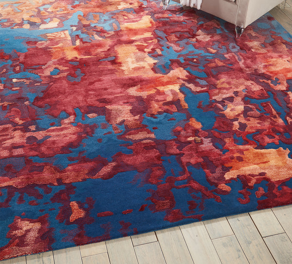 With fiery red abstract designs on a deepening sky blue field, this Cielo area rug brings an intense, natural beauty wherever it goes. The luxurious hand tufted pile is carved for added dimension and texture for the perfect combination of durability, comfort, and distinctive style statement.
