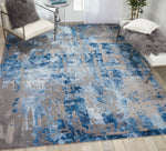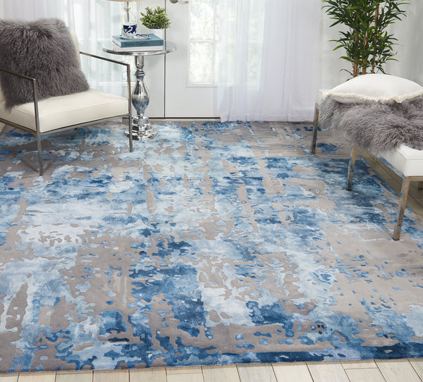 This amazingly artistic rug could adorn a wall as easily as a floor, with its modern abstract design and rich use of blue and grey hues. This hand-tufted rug features a thick, luxurious wool blend pile, carved for added dimension and texture for the perfect combination of durability, comfort, and artistic appeal.