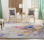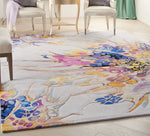 Captivatingly vivid color seems to splash across the surface of this sensational Cielo area rug. The abstract design hints at floral motifs and natural forms, in a beautifully balanced and painterly rug. The luxurious blend of wool and shimmering, silk-like Luxcelle fibers adds to the beauty of its sophisticated palette in multicolor shades of grey, purple, gold, beige, blue, and yellow. This exceptionally soft, hand-tufted cut pile works beautifully in contemporary, modern, and eclectic decor.