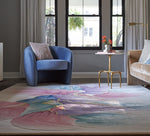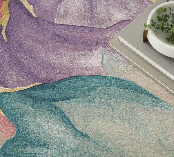 Bring mesmerizing style to your living room or bedroom with this abstract rug from the Cielo Collection. Vibrant strokes of purple, blue, pink, and gold create movement across the solid ivory ground, which is enhanced with carved accents that add an eye-catching sense of depth. Handmade from a blend of premium New Zealand wool and silky Luxcelle.