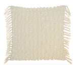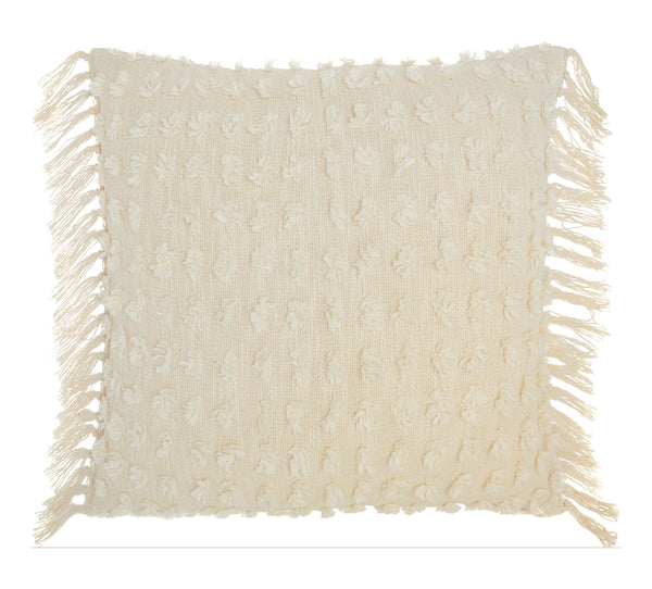 The neutral color palette paired with textural intrigue make this Cream Tufted Fringe pillow pillow a wonderful addition to any home. With fringed edges and a frayed dot pattern, this pillow keep you cozy while adding an exciting flair to your decor. Recommend spot cleaning as needed using a gentle cleanser.