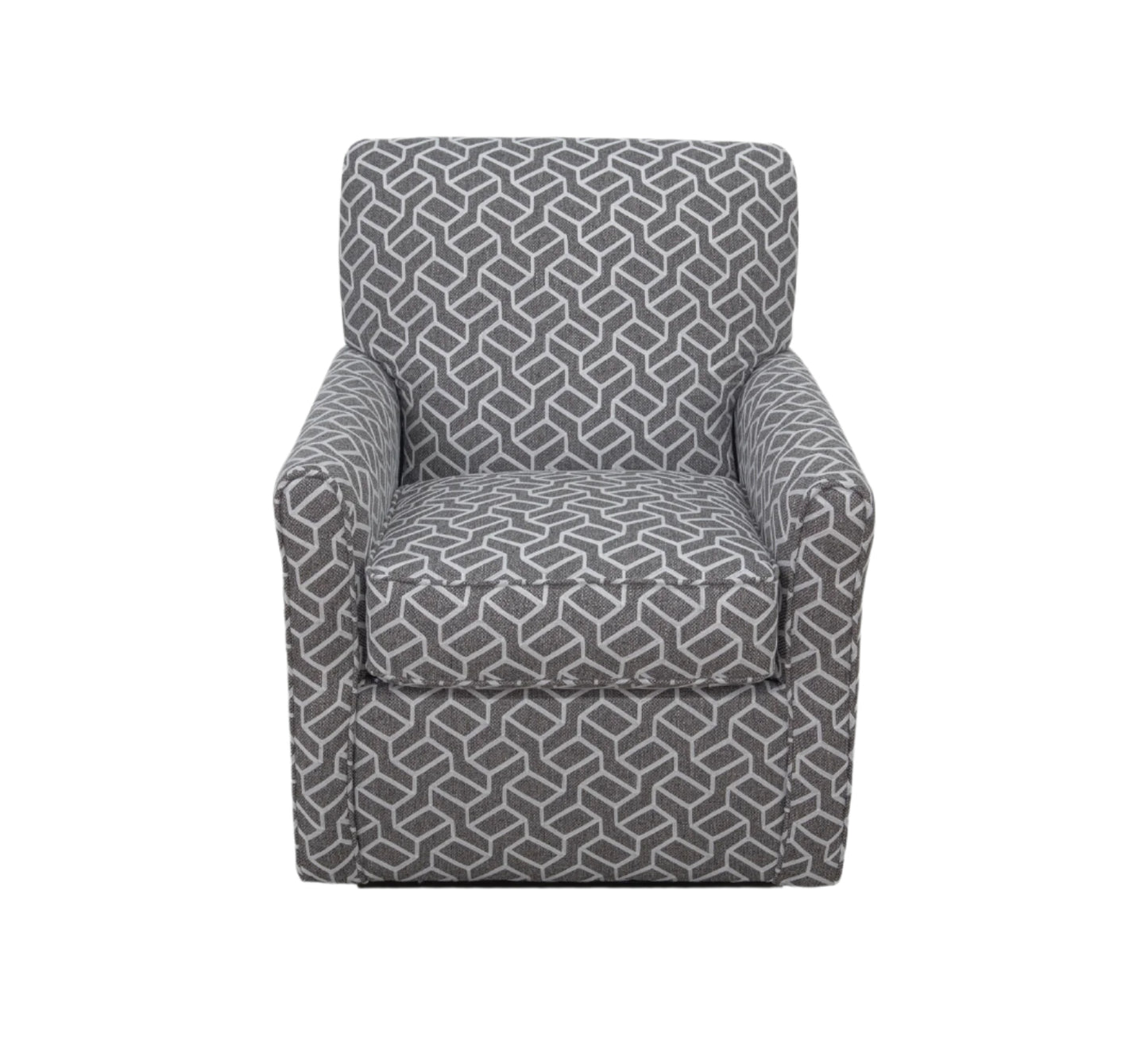 Transitional swivel accent chair upholstered in a grey, geometric patterned fabric. 100% Polyester CC: WS