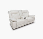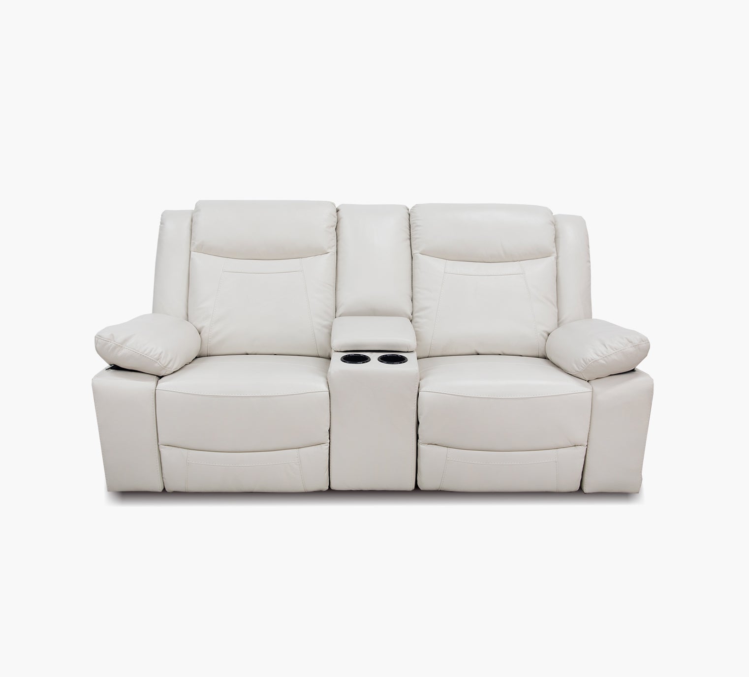 Premium top grain leather matched with PVC on outside arms and back. Transitional styling with customized comfort. Extra wide loveseat features unique stitching detail, plush pillow top arms, and a 41" tall back. Storage console includes storage and cupholders for added convenience.