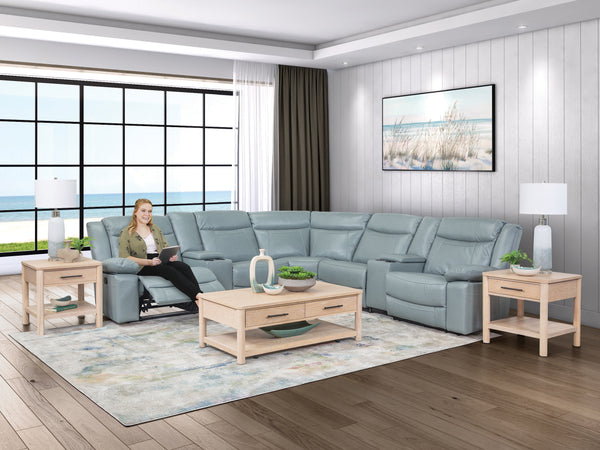 Dallas Teal 7 Piece Leather Dual Reclining Sectional