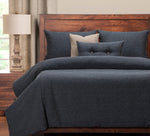 Nubby homespun yarns flecked with deep indigo blue highlights create a vintage look and feel for a modern easy-going lifestyle. Innovative no-shift design: Duvet cover has eight hidden buttons inside to keep the down alternative comforter securely in place. Zipper closure: Duvet cover & pillows stay looking neat and tidy at all times with zipper closures. One queen size duvet cover One quality down alternative comforter insert Two bed pillow shams One 26? x 14? pillow with buttons in Belmont Deep Blue One 16? x 16? pillow in Belmont Greystone