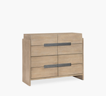 Contemporary bedroom collection designed for children and teens. Crafted from select hardwoods and White Oak veneer featuring straight grain in a charming weathered oak finish, accented by rustic pewter hardware. The drawers are equipped with finished interiors and ball bearing guides with bottom drawers designed to be dustproof. 52"" W x 18"" D x 42"" H."