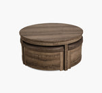 The Dylan is a contemporary occasional table in a faux grey wood veneer. The Dylan collection features a storage cocktail table with four stools on casters. Scratch, stain, and fire resistant surface.