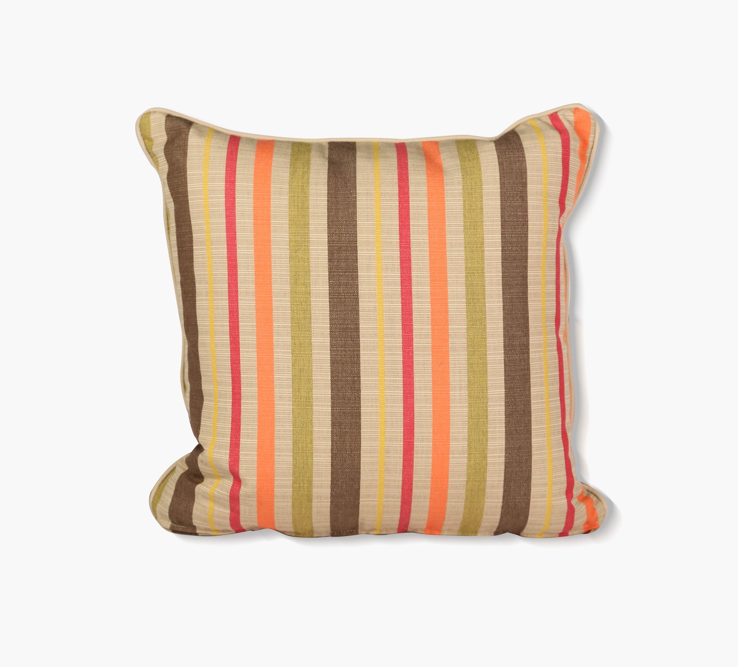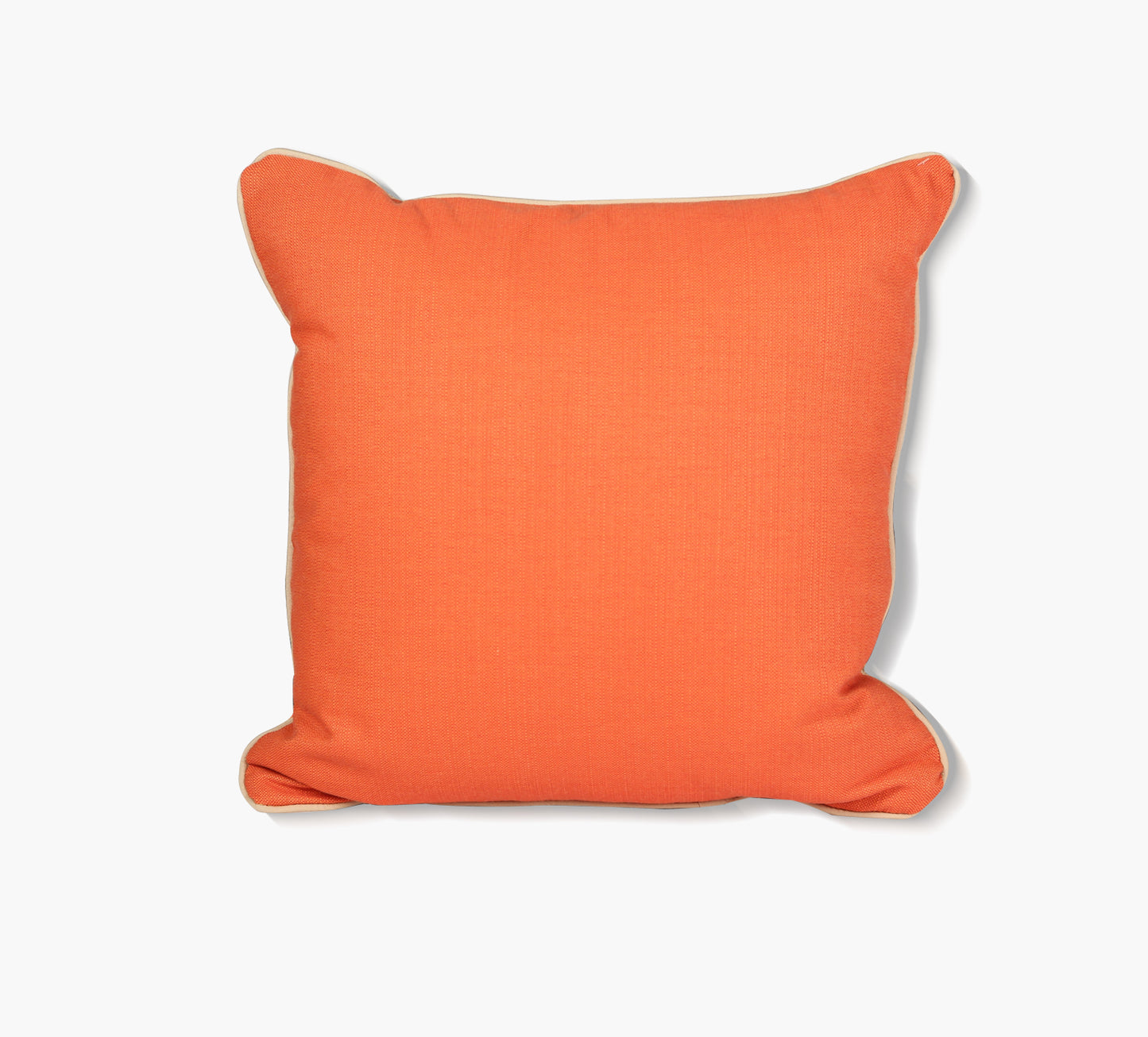 Durable all-weather 20"" x 20"" decorative throw pillow features reversible front and back design in fade resistant Sunbrella 100% solution-dyed acrylic upholstery. Front: Echo Sangria/Back: Solano Fiesta. Includes contrast welt in Canvas Antique Beige and zipper for convenience. Handmade in the U.S.A."