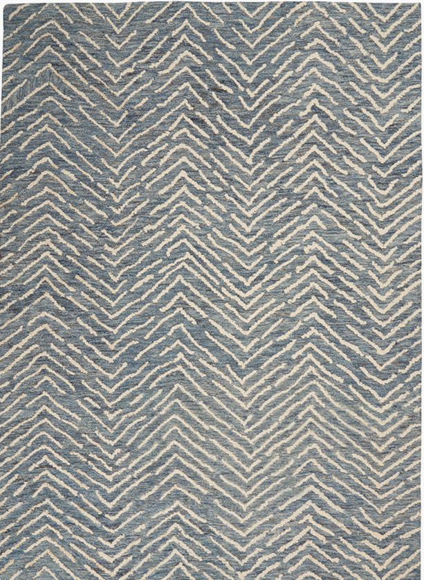 Rows of chevrons move like arrowheads across the textural surface of this free-spirited Colorado Collection area rug. Its artisanal, hand-tufted loop pile is irresistible to the touch. Enjoy the softness and durability of its easy-care, low-shed wool fibers in versatile indigo and ivory.
