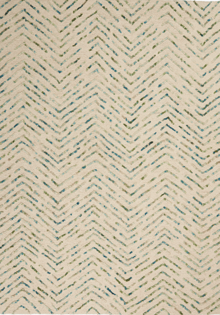 Rows of chevrons move like arrowheads across the textural surface of this free-spirited Colorado Collection area rug. Its artisanal, hand-tufted loop pile is irresistible to the touch. Enjoy the softness and durability of its easy-care, low-shed wool fibers in a fresh, natural palette of ivory and green.