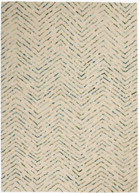 CLR02 IVGRE Rows of chevrons move like arrowheads across the textural surface of this free-spirited Colorado Collection area rug. Its artisanal, hand-tufted loop pile is irresistible to the touch. Enjoy the softness and durability of its easy-care, low-shed wool fibers in a fresh, natural palette of ivory and green.