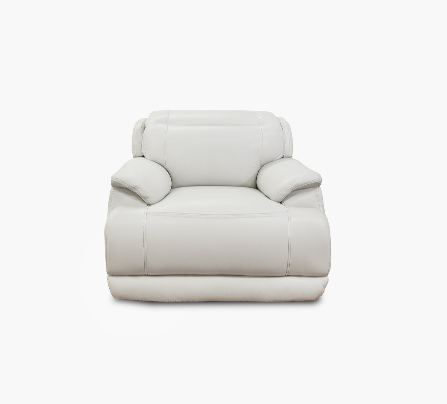 Top grain leather everywhere the body touches and everywhere forward facing matched with PVC. Power headrest and power footrest functions extend simultaneously with the touch of one button. Extra wide seats and pad-over chaise ottoman footrests for full relaxation. Steel seat box prevents wracking and ensures longevity. 2.2 high density, high resiliency foam provides maximum comfort and durability.
