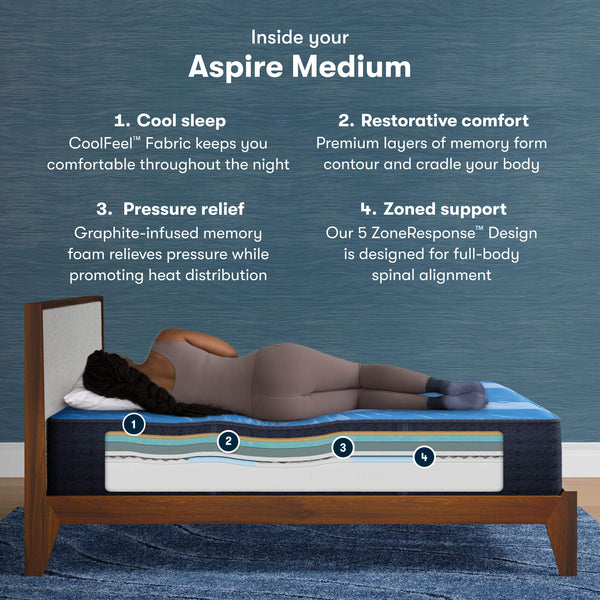 CoolFeel Fabric keeps you comfortable throughout the night. 1""EverCool Supreme, 1.5"" Deep Reaction Max, and 2"" graphite infused memory foam contour and cradle your pressure points for rejuvenating sleep. 5 ZoneResponse and smooth top design provides head-to-toe comfort and support for restorative sleep."