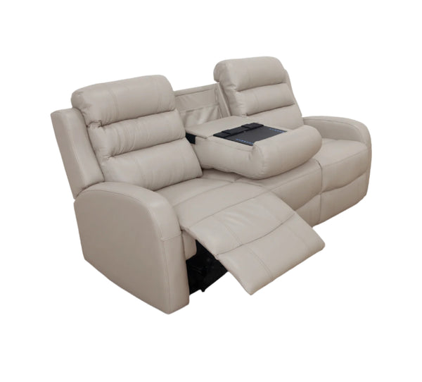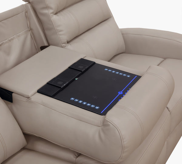 Leo Taupe Leather Triple Power Sofa w/ iTable