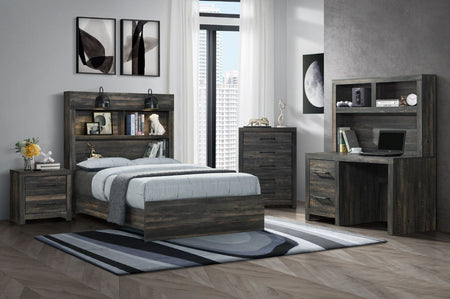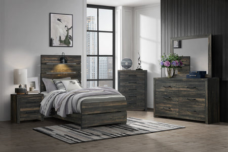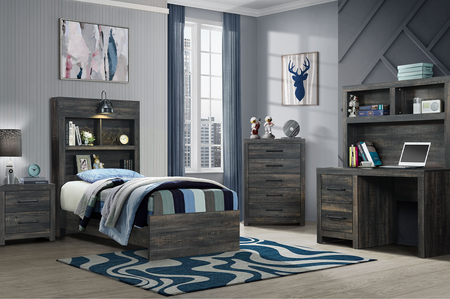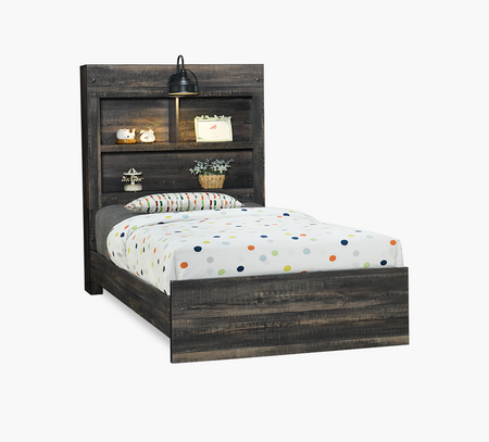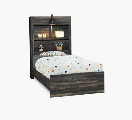 The Linwood Dark Oak twin panel bed brings rustic charm and practical design to any bedroom. Finished in a rich dark oak tone, it features a planked headboard accented with an industrial style lamp for both style and function. An LED bulb is included, and the lamp accommodates a standard 60 watt lightbulb or A19 LED E26 equivalent. Built for lasting strength, the twin bed supports up to 400 pounds and works best with a low profile foundation for a balanced look.