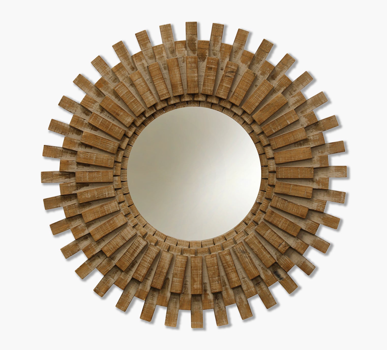 The Natural Picket Wall Mirror will hypnotize the viewer with its circular frame built of natural wood slices. The natural color tones down the design making for a frame that does not overpower a space but revitalizes it.