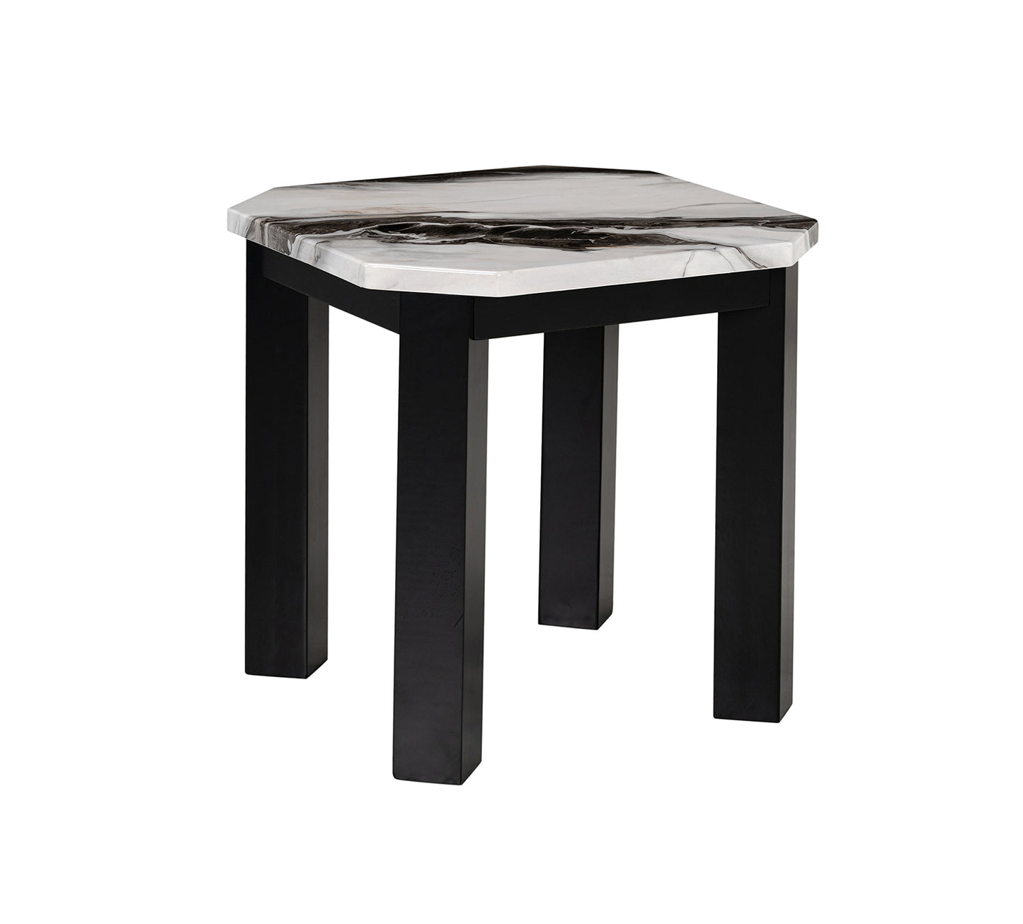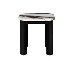The Panda end tables showcase a beautifully veined faux marble top paired with sleek black legs crafted from solid hardwood. Designed to embody both luxury and lasting durability, this elegant fusion of materials creates a timeless statement piece for any sophisticated interior.
